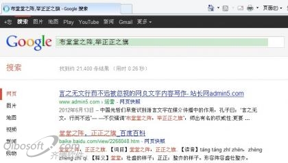 當然,我也知道,對于原創內容頁面識別,搜索引擎技術一直都是軟肋,但至少在我很多文章注明首發網址與版權聲明,網絡上都有多個高權重網頁指向我首發頁面的情況下,我認為“搜索引擎判斷原創首發網站難”更主要是態度問題——絕對沒有百度搜索工程師Lee所說那么難。譬如,在谷歌那兒,我就很少看見如百度一樣,采集復制偽原創本人文章頁面被大規模推薦到關鍵詞排名榜首,那么偶爾出錯,我可以理解你搜索引擎的難處。