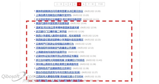 對(duì)于按發(fā)布時(shí)間有序排布在索引頁(yè)系列的資源鏈接,如何保證新發(fā)布的資源都被收錄呢?如上述所說(shuō),在18個(gè)小時(shí)后,圖1中的資源鏈接已經(jīng)往后有序推移到翻頁(yè)第4頁(yè)了,如此看,這段時(shí)間內(nèi)新增了翻頁(yè)第2,3,4頁(yè)索引的資源鏈接,那么,spider就需要完全的收錄這些新增的資源;首先,當(dāng)spider抓取18小時(shí)后的第1頁(yè)時(shí),將新發(fā)現(xiàn)的資源鏈接集合,與上一次18小時(shí)前第1頁(yè)索引頁(yè)調(diào)度記錄的資源鏈接集合作比較,會(huì)發(fā)現(xiàn)兩次調(diào)度發(fā)現(xiàn)的資源鏈接沒(méi)有交集,所以就可能存在漏鏈。進(jìn)而需要繼續(xù)發(fā)起第2頁(yè)的調(diào)度,第2頁(yè)發(fā)現(xiàn)的資源鏈接集合與之仍然沒(méi)有交集,所以還可能存在漏鏈,繼續(xù)發(fā)起第3頁(yè),第4頁(yè)的調(diào)度,最終如圖2所示,紅框中的鏈接與上一次索引頁(yè)調(diào)度記錄的資源鏈接有交集,因此可以斷定已經(jīng)補(bǔ)全了這段時(shí)間內(nèi)新增的資源,從而結(jié)束翻頁(yè)系列的調(diào)度,并保證了該翻頁(yè)系列的所有鏈接的補(bǔ)全,從而提升搜索產(chǎn)品的收錄效果。