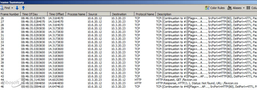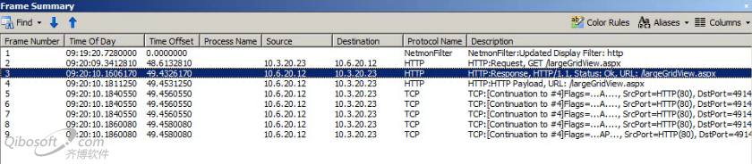 非常容易使用 MS Network monitor 對(duì)比出。壓縮前后,frame的數(shù)目明顯的減少了,從40條減少到9條。