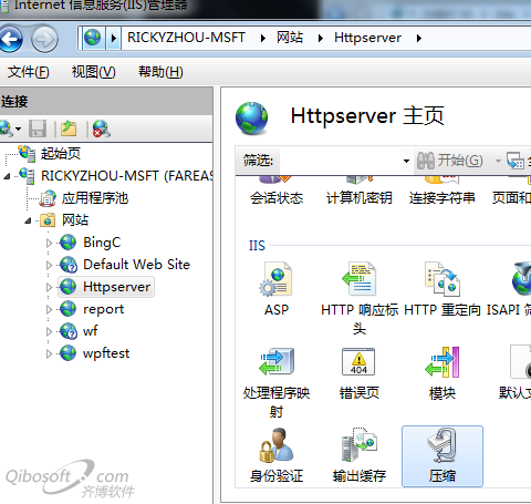 打開IIS。選中一個(gè)你的網(wǎng)站。在右邊選項(xiàng)卡里選擇壓縮(compression)