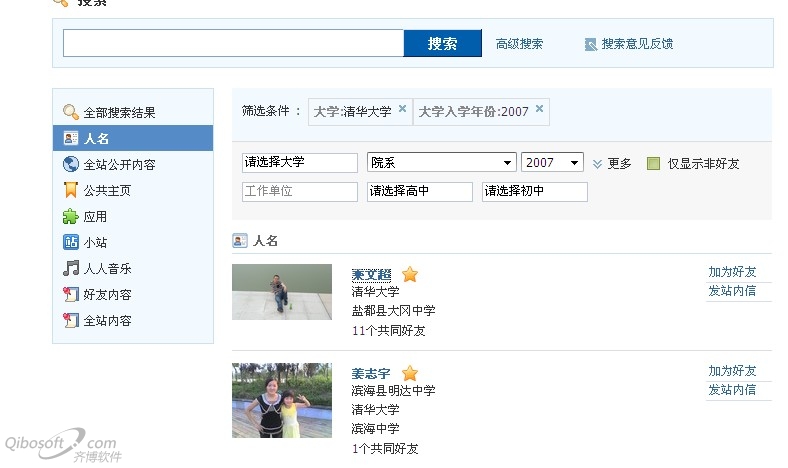 2、在站內(nèi)搜索,我們可以在站內(nèi)按照地區(qū)、學(xué)校、年齡、性別等搜索好友,比如我們要找IT行業(yè)的可以找一些出名院校的計(jì)算機(jī)專業(yè),如下圖他首先給你推薦的跟你同一個(gè)城市的,畢竟是老鄉(xiāng),這樣加好友的成功率也很大。大家都在外面學(xué)習(xí)拼搏,看到家鄉(xiāng)人總有一種親切感。