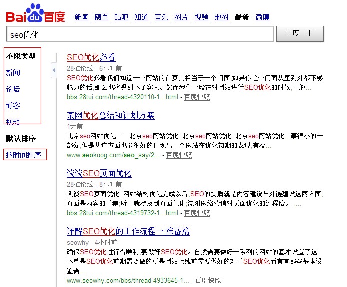 比如,通過百度搜索引擎搜索“seo優(yōu)化”,那么一般在首頁會(huì)有seo優(yōu)化的最新相關(guān)信息。這里也是我們挖掘外鏈資源的一種好方法。