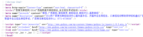 一大堆亂七八糟的鏈接和注釋,甚至引用了其他網站的文件,眾所周知,只要你的代碼中引用了文件,那么瀏覽器就會去加載完這些文件才會繼續執行之后的代碼,如果其他網站的文件丟失了,那么瀏覽器將會花大量時間等待這個文件響應,而這些都是會增加網站打開時間的。那么,如何給網站添加內部鏈接呢?我的網站則通過精簡,只保留搜索引擎需要的meta信息和必要的文件鏈接,從而使得header更加簡潔和高效,如下圖: