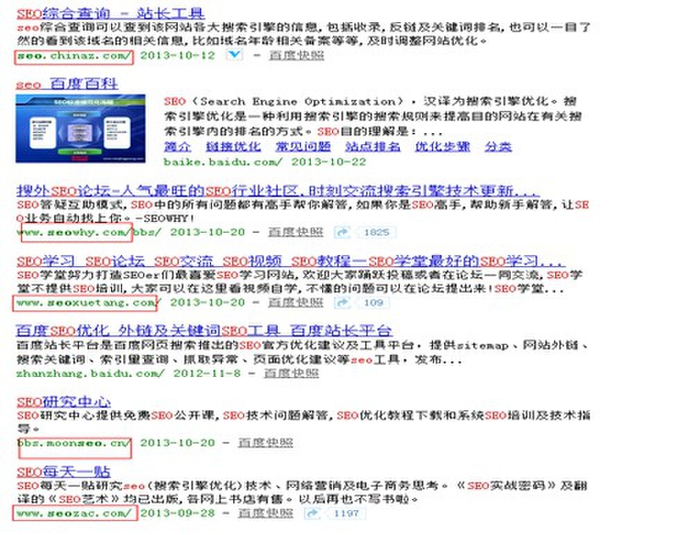 通過上面的圖片大家可以發(fā)現(xiàn)。大部分域名里面都含有網(wǎng)站的關(guān)鍵詞的。我這只是隨便的找了一個(gè)相對(duì)于大家都比較熟悉的詞(SEO)來說的。所以在這里我個(gè)人覺得域名的選擇相對(duì)于一個(gè)網(wǎng)站的優(yōu)化是很重要的。