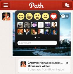 雖然一個好的用戶體驗并非僅僅指用戶界面,精致的頁面卻能在第一時間抓住用戶的眼球。從視覺上的沖擊到實際運用的舒適,是一個循序漸進、相輔相成的過程。看看下圖的path,在設計上,以經典的紅色為底色,為大眾所接受。設計平滑的導航條充滿了運動氣息。在操作上,如果你喜歡某個圖片,你可以點擊右上角的笑臉圖標。如果你覺得這張圖片相當的糟糕,不值得一看,那么可以選擇悲傷的臉。運用圖案,生動形象的表明你對這個圖片的態度。相對于文字來說,使用5個 不同類型的表情實在是更能吸引用戶的注意力。